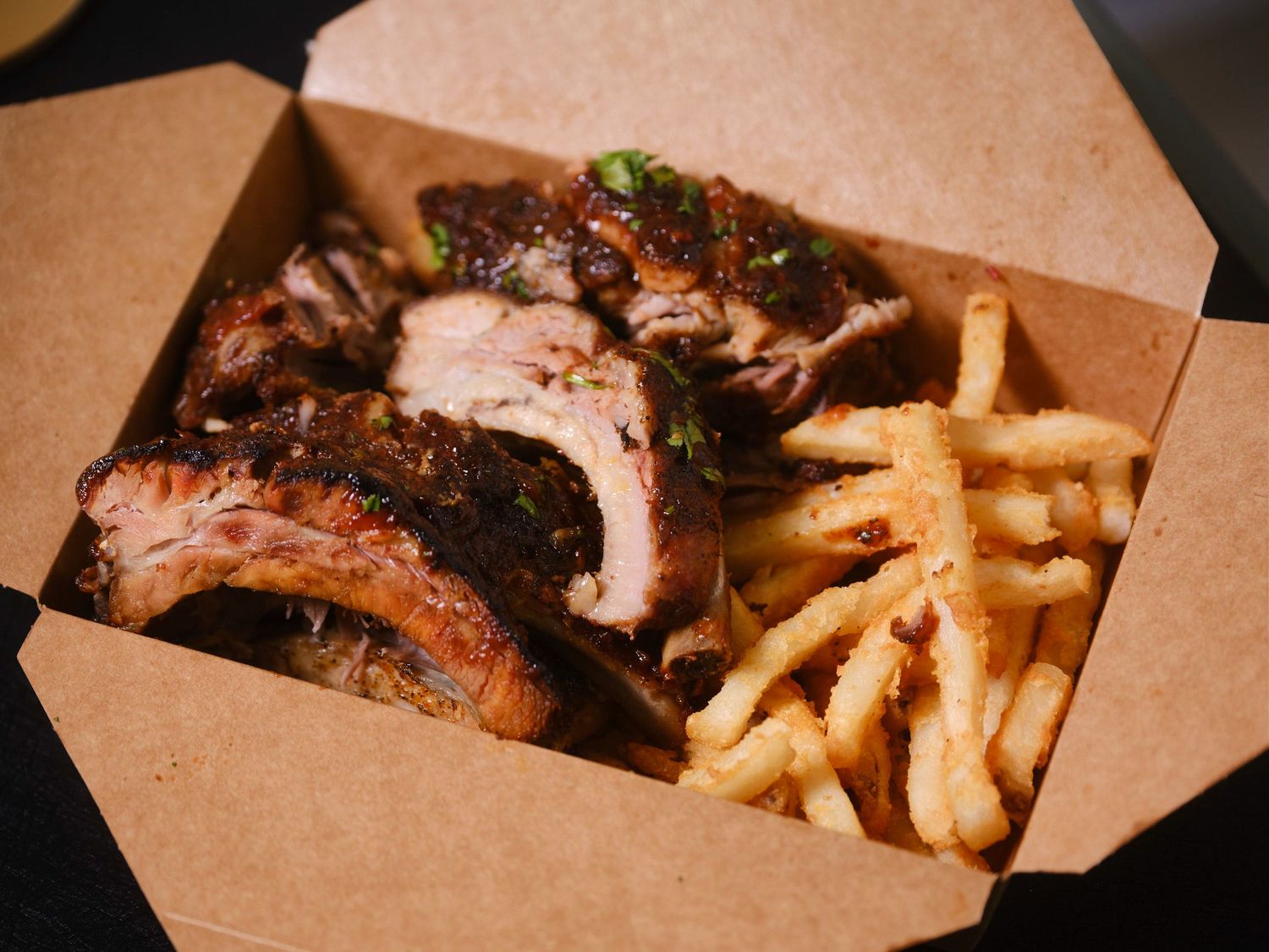 Tender, slow-cooked ribs glazed with a rich house sauce, served in a half rack portion that delivers deep flavor and a satisfying bite.